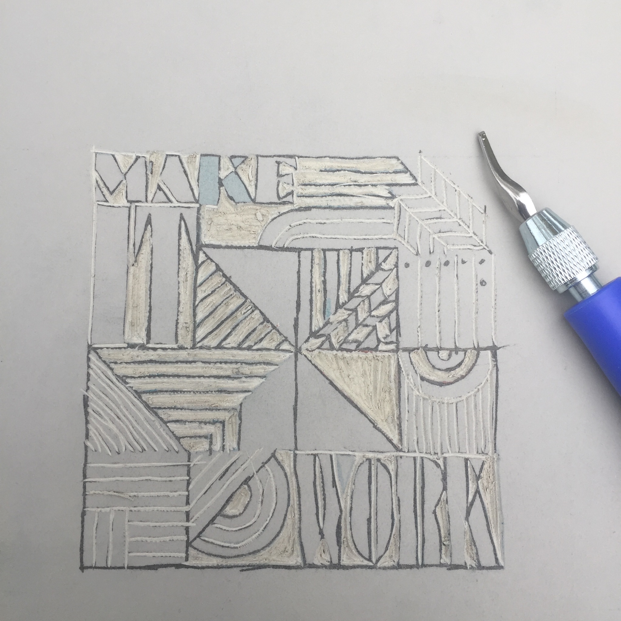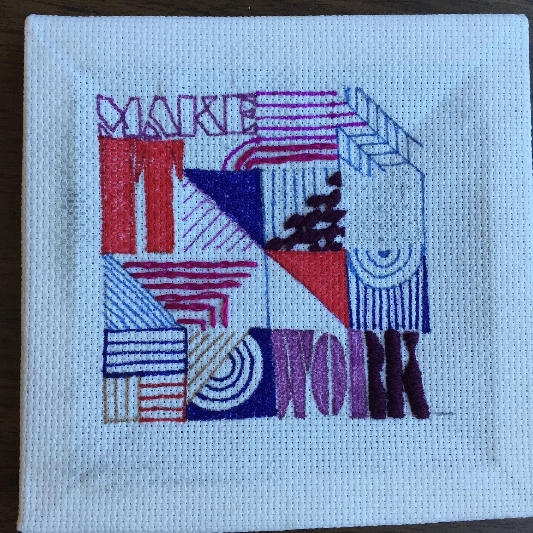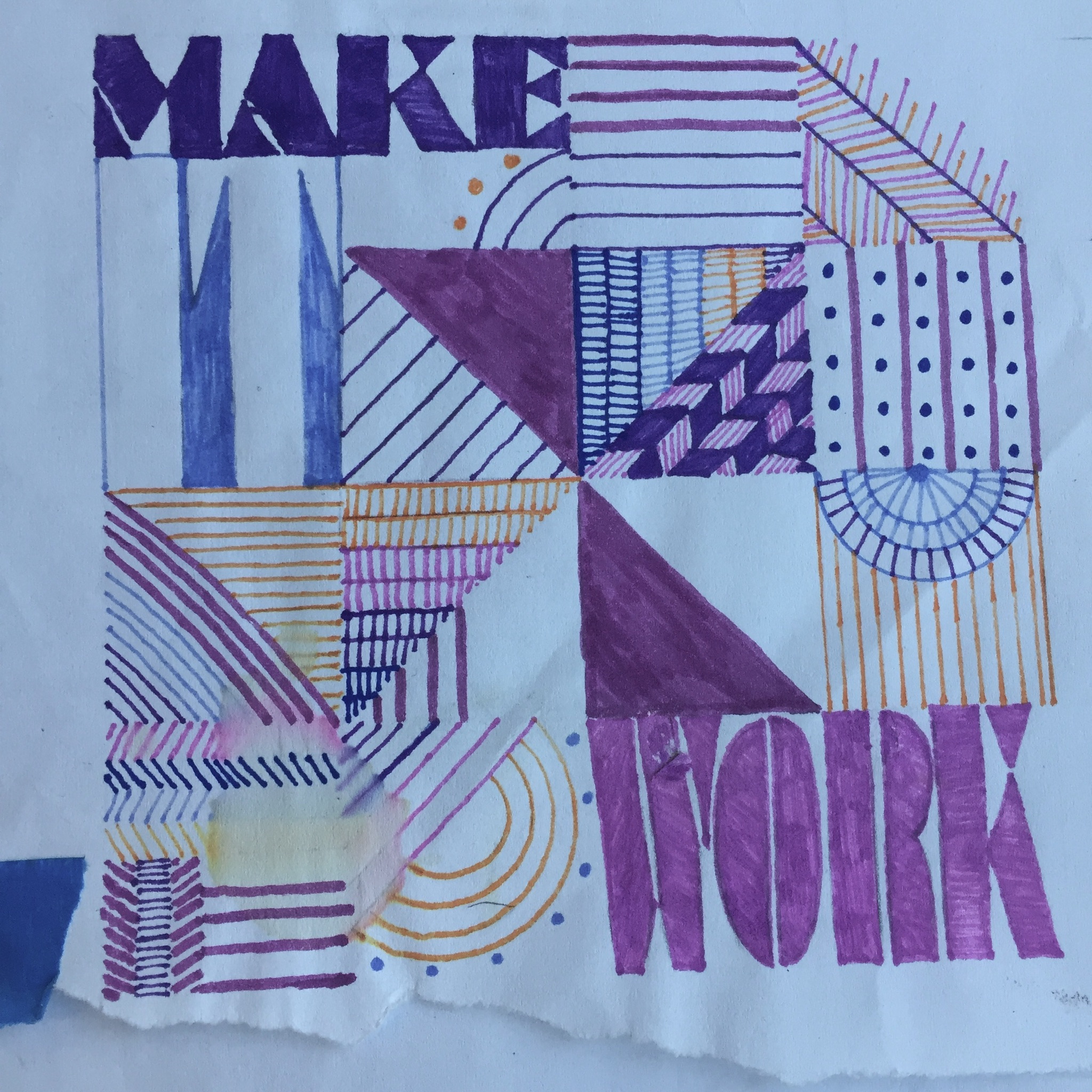 These last two years have been stressful since the my layoff from my fashion industry job. There have plenty of ups, downs and two cross country moves. In 2017, I created “Make It Work” in my tiny basement studio. I thought I knew the meaning of that at the time. Honestly, I wanted to make something that was inspiring and can put on a Society6 iPhone case. I felt like a sellout, but I wanted to sell something. I sketched this geometric gridded piece without words. I created the layout by hand, scanned it into my computer, added the type and printed it out. The original was drawn with marker.