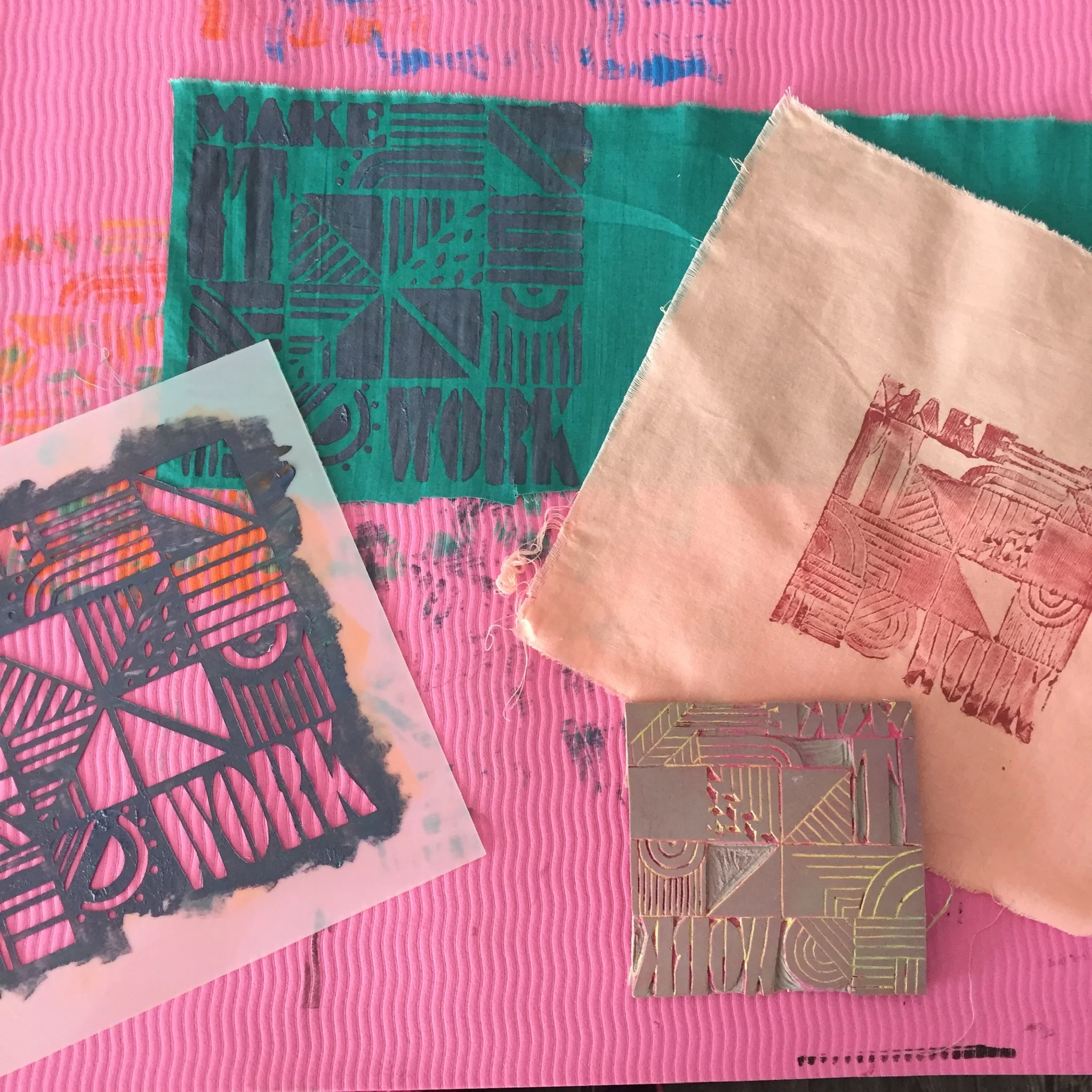 I’ve been tinkering. Inspired (and a little jelly) by some amazing printmakers on Instagram. Follow #SurfacePatternDesign or #Blockprinting and you will see marvelous things. I started creating linocuts at the end of last year. As shown here in the Make It Work piece. I embroidered on top of the print.