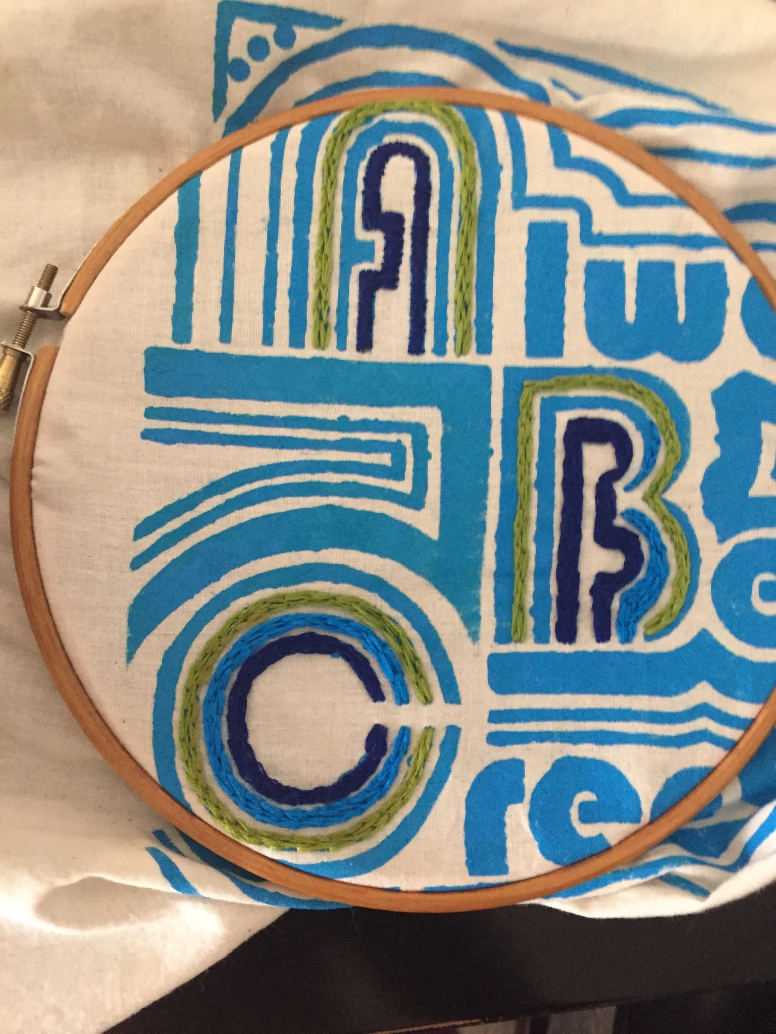 I made a screen printed and embroidered wall hanging to inspire you with ABC. You can shop it here.